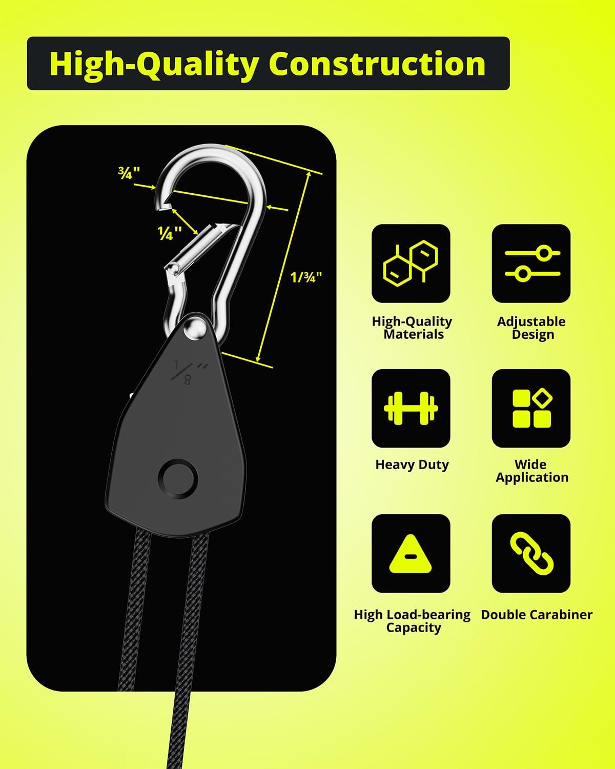 Easy to Use: The Elufah system simplifies securing with the Adjustable Retractable Rope Hanger. Adjust and lock in seconds without tools. Therefore, tasks like setting up tents or hanging plants become quick and efficient.