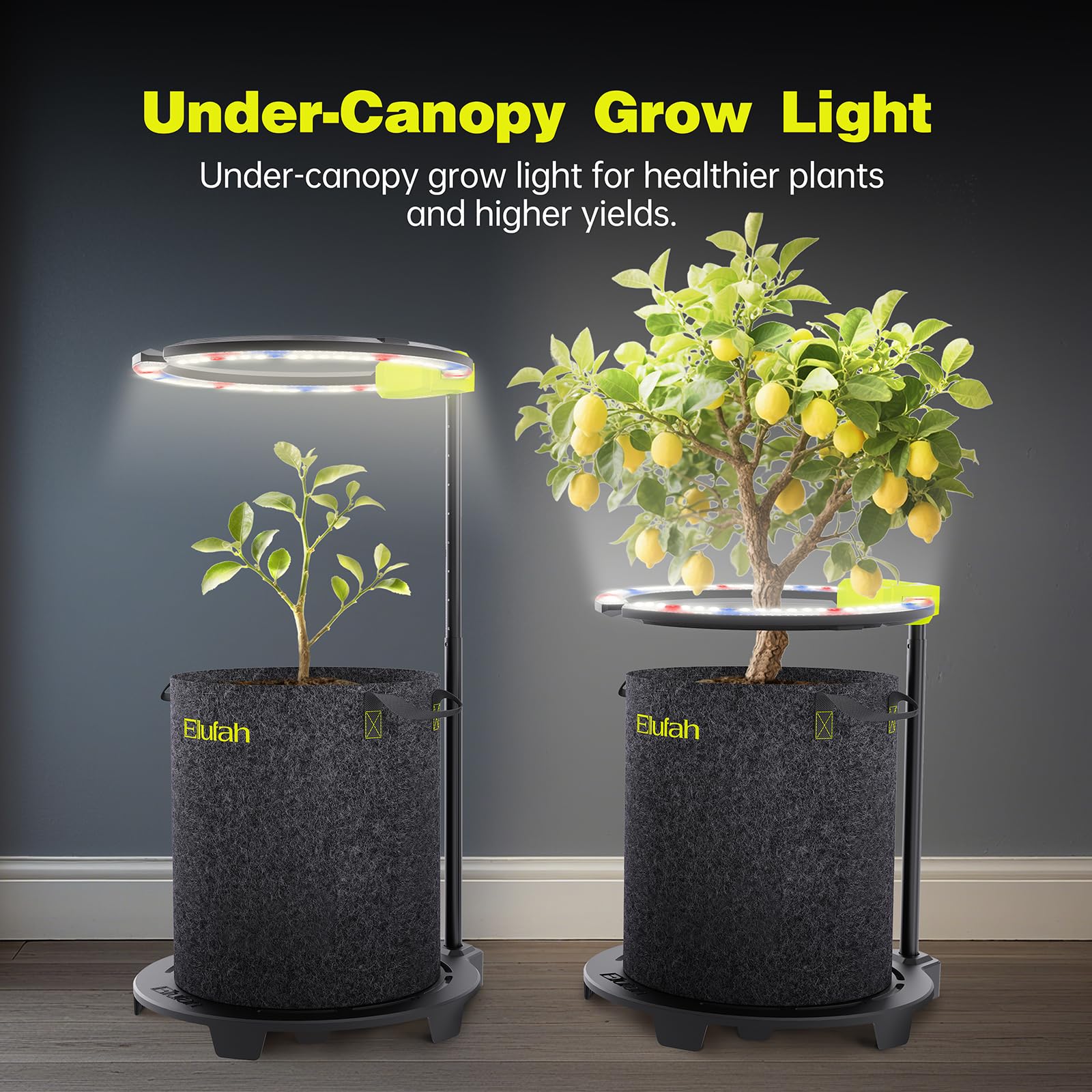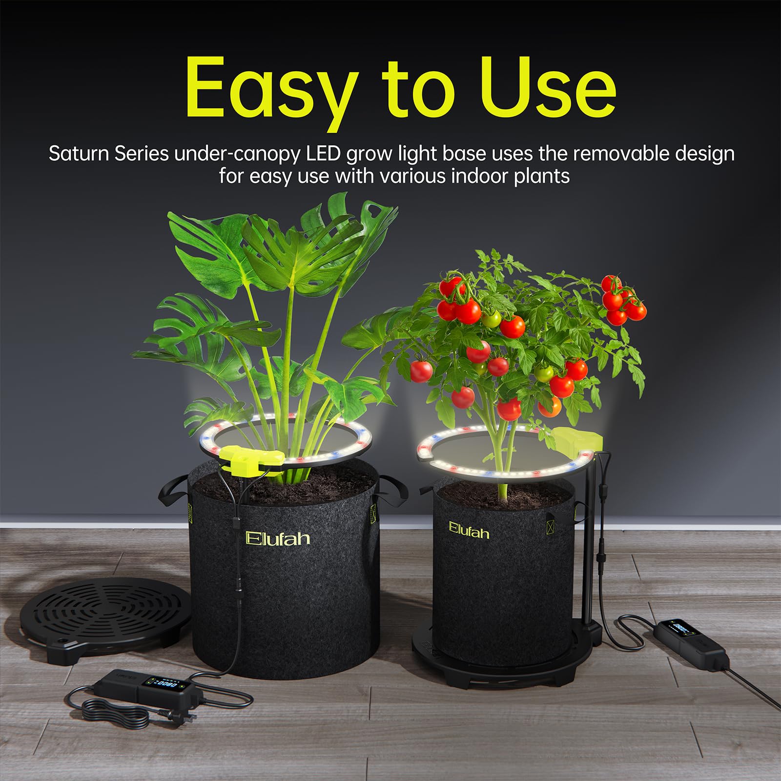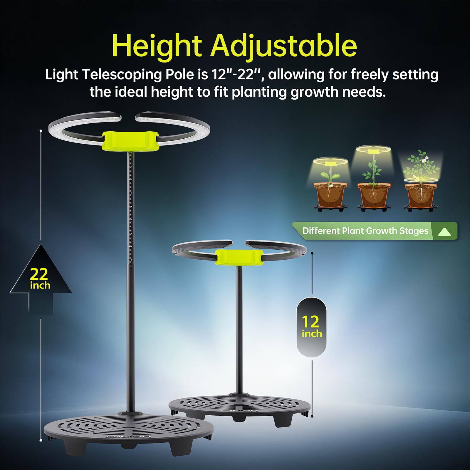 Adjustable Height: Additionally, you can place the Saturn240 in pots or on its base. Its telescoping pole extends from 12 to 22 inches to match plant growth. Furthermore, the sturdy, open base accommodates pots or grow bags, enhances airflow, ensures drainage, and prevents root rot.